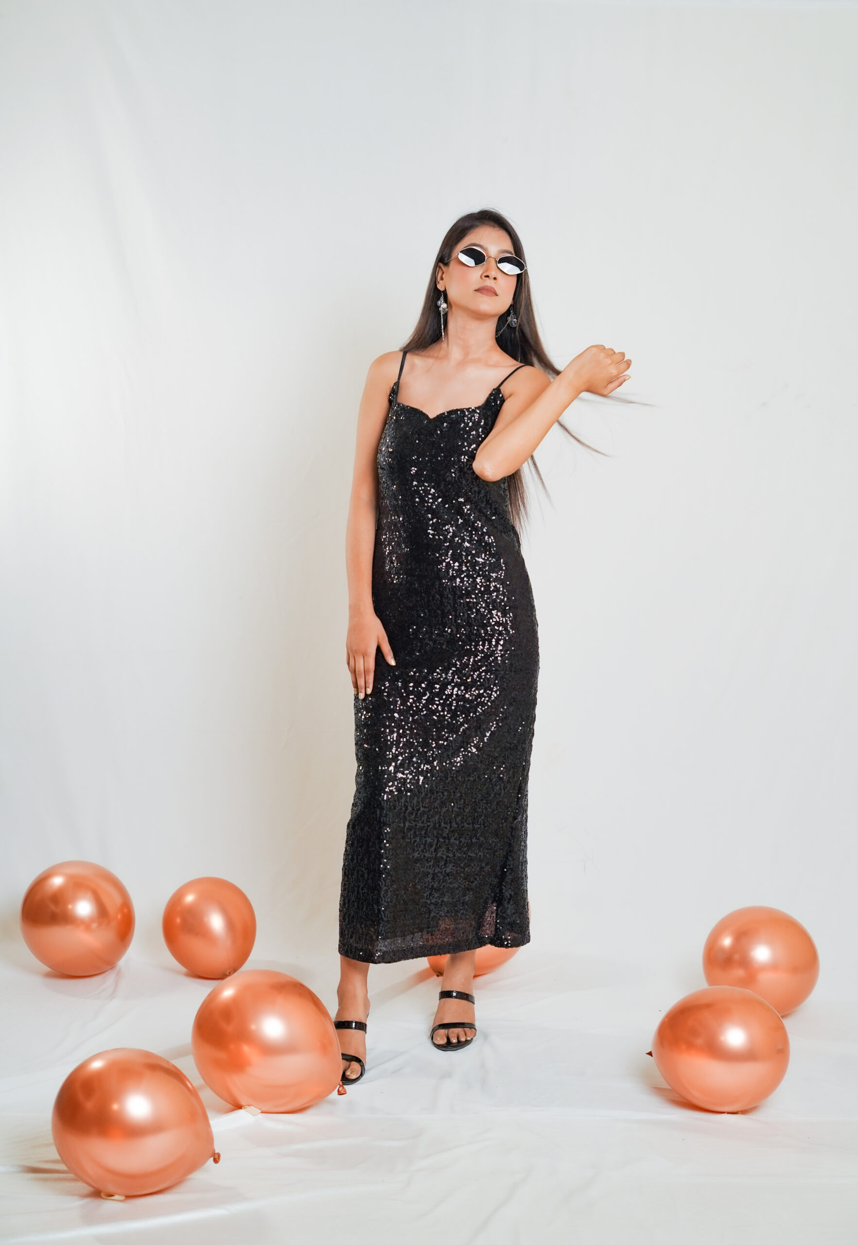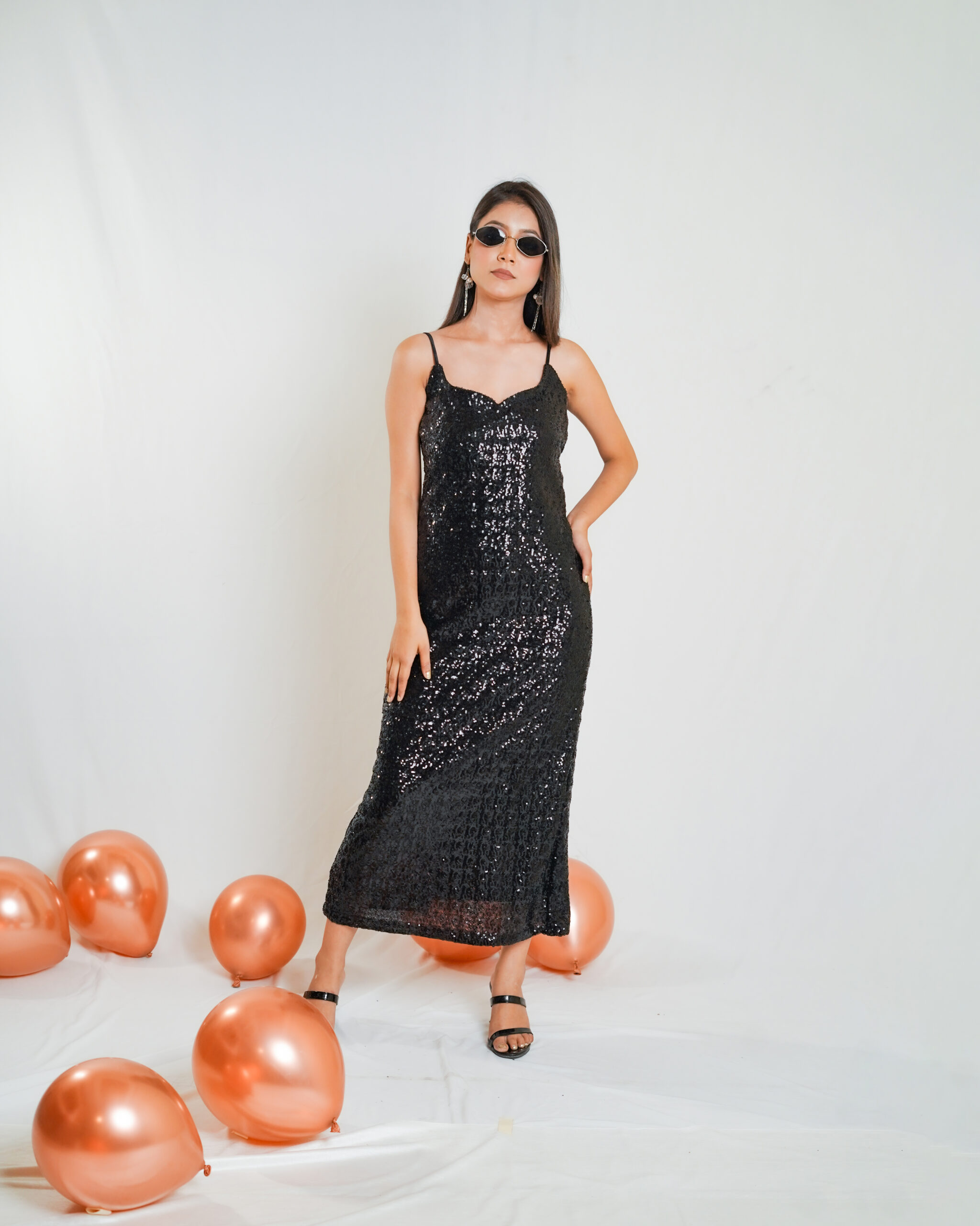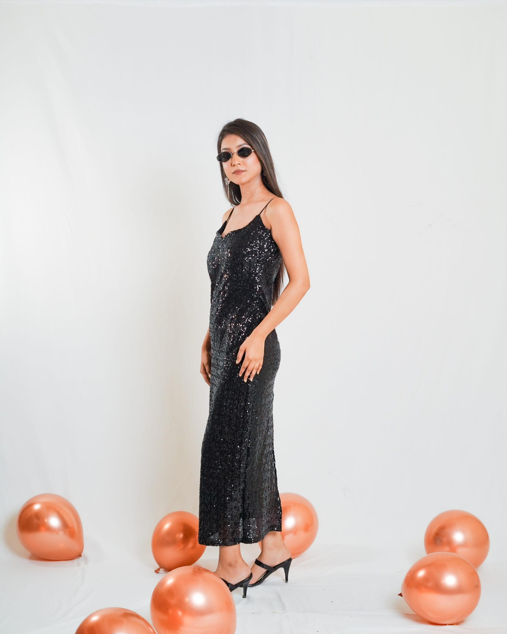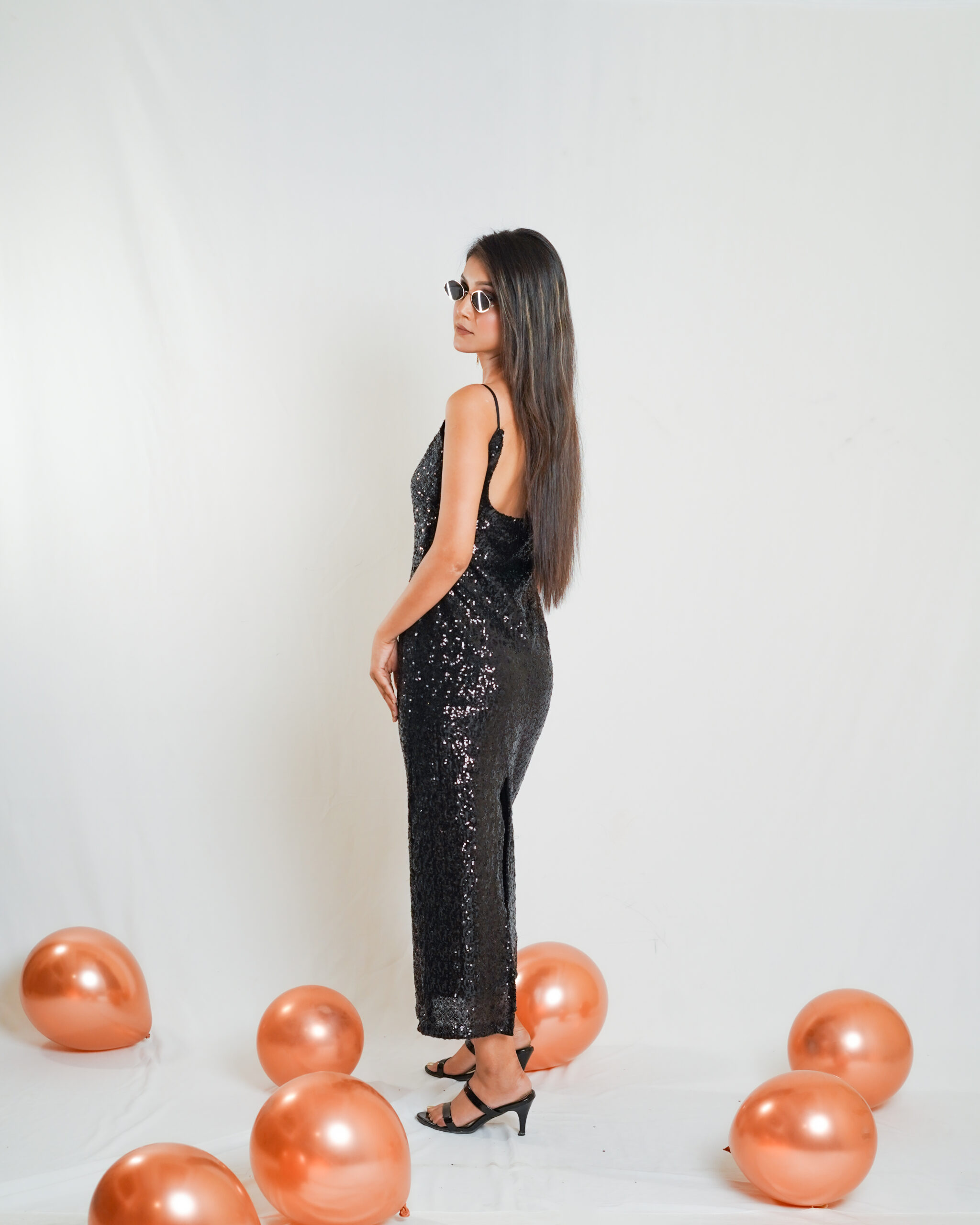 The Black Sequin Maxi Dress with Back Slit dazzles with shimmering sequins, featuring a dramatic back slit for a bold, elegant look perfect for formal events and glamorous nights.