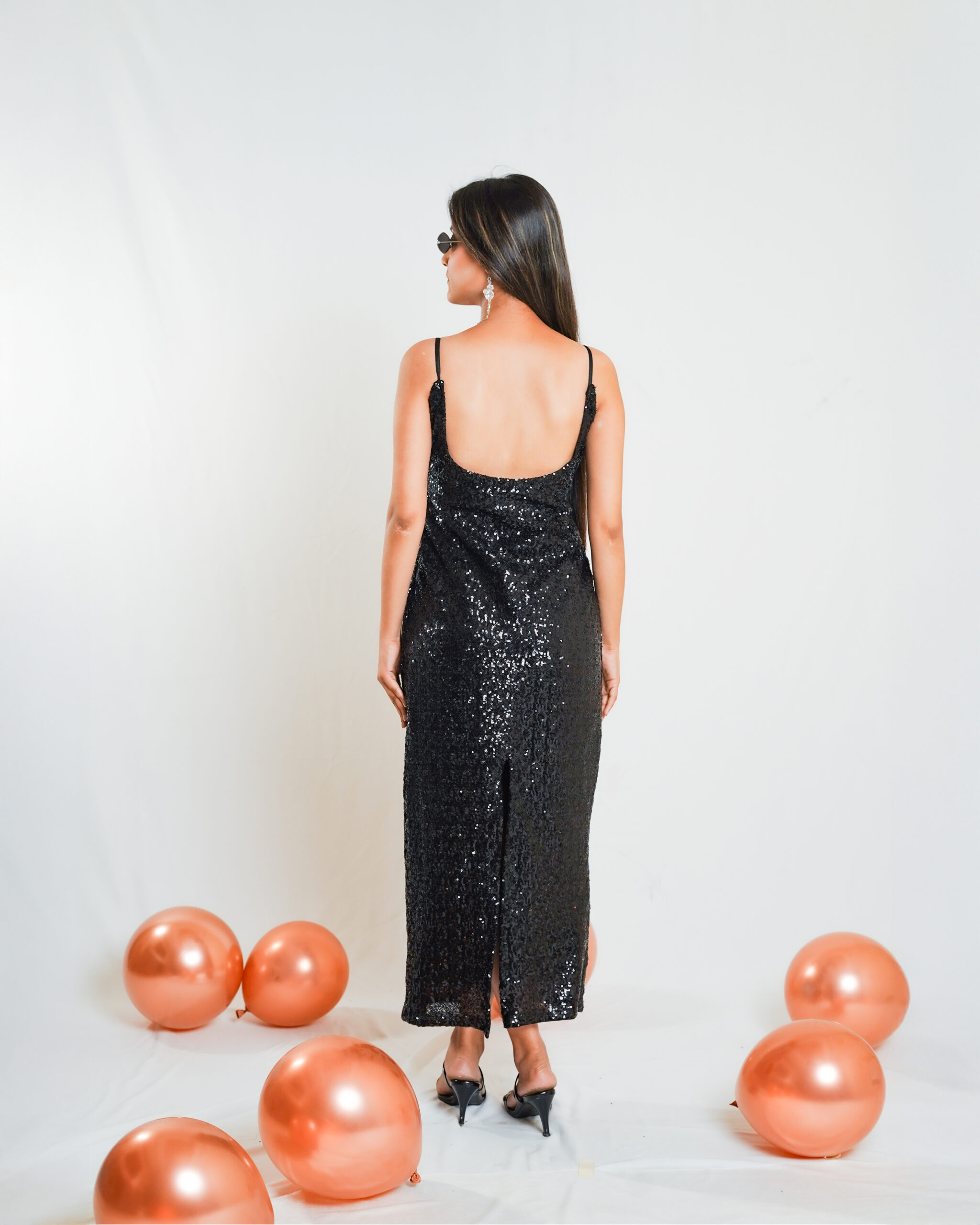 Black Sequin Backless Dress