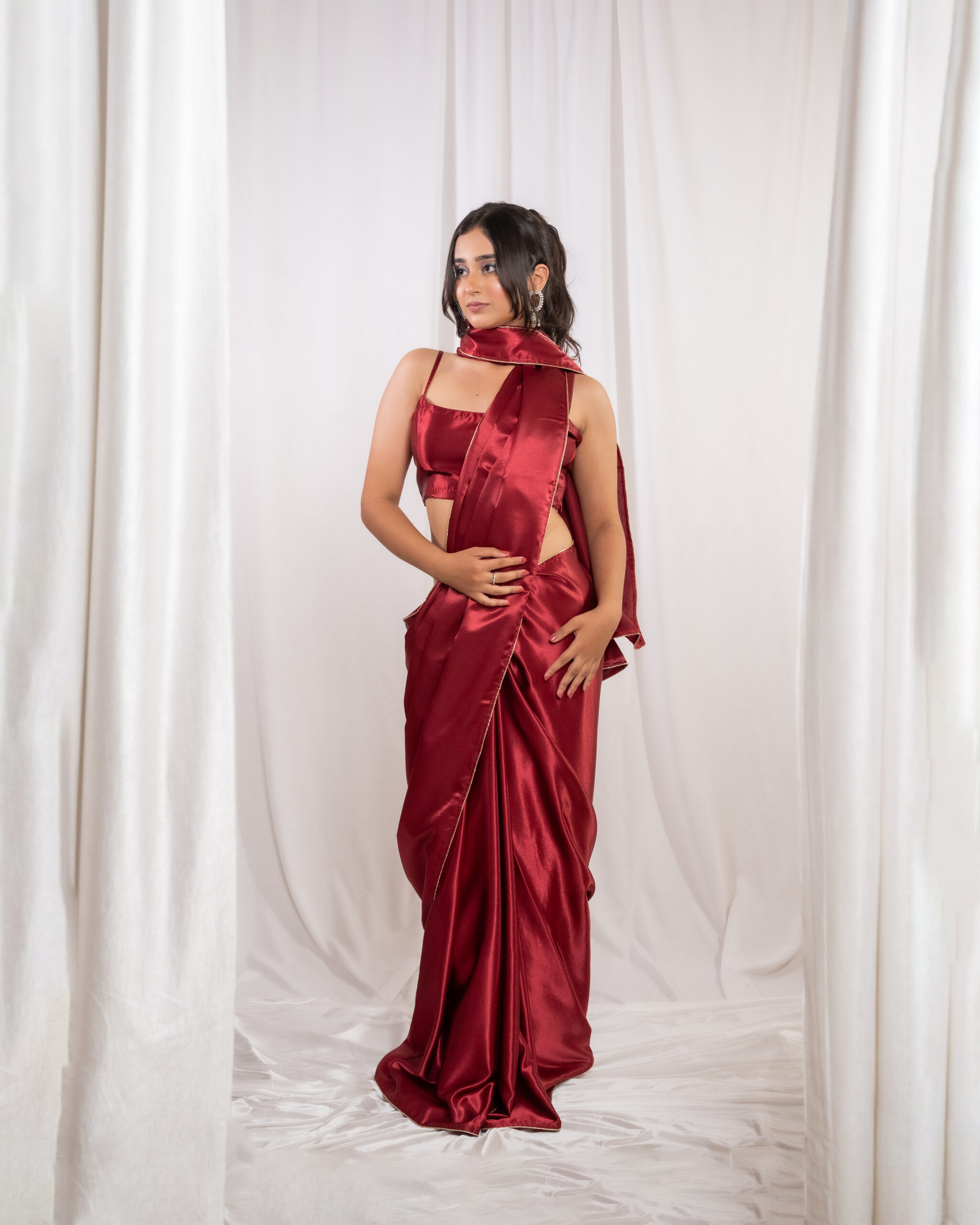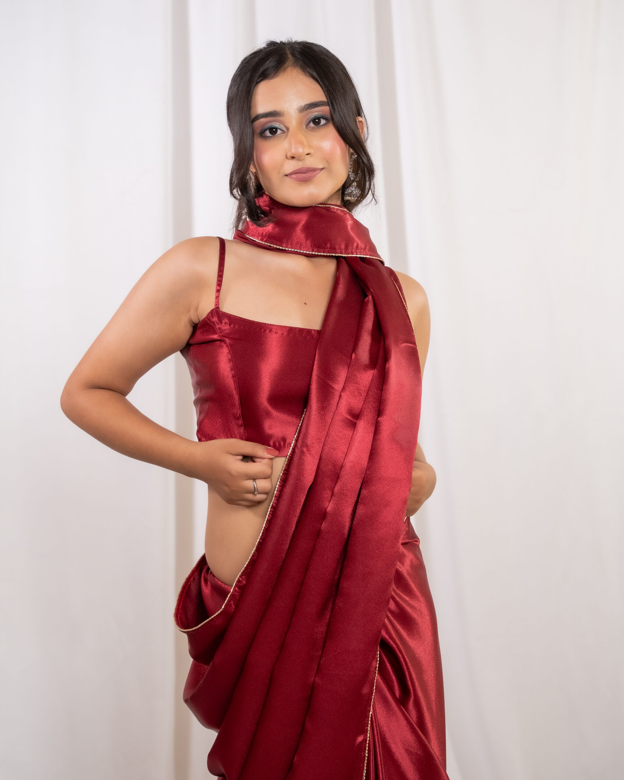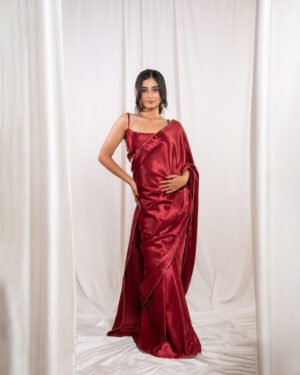 Red Silk Satin Saree