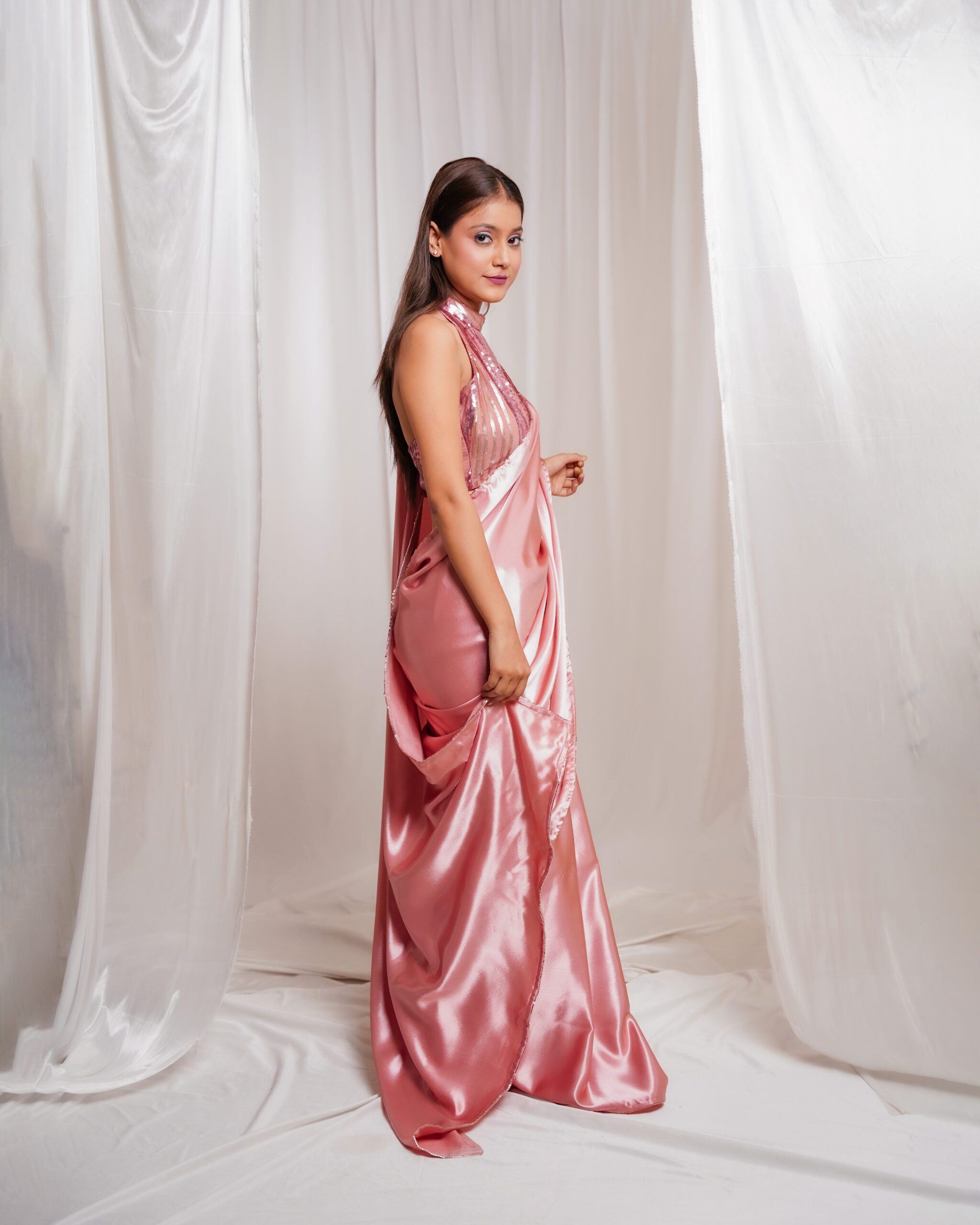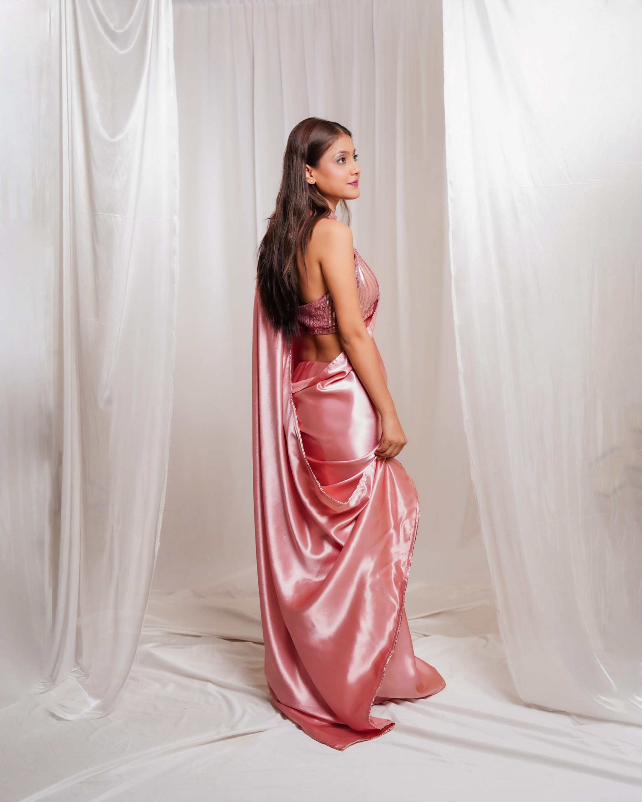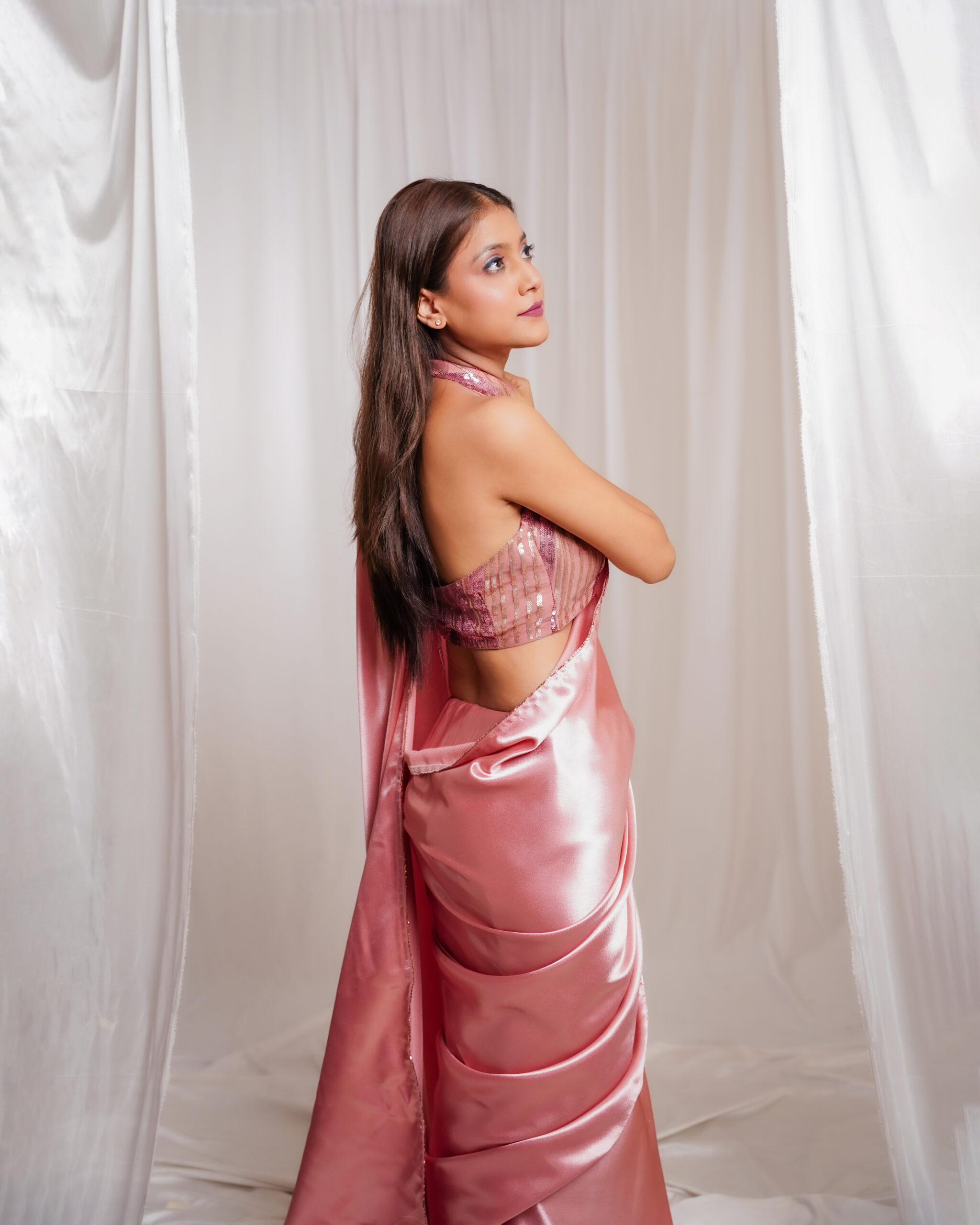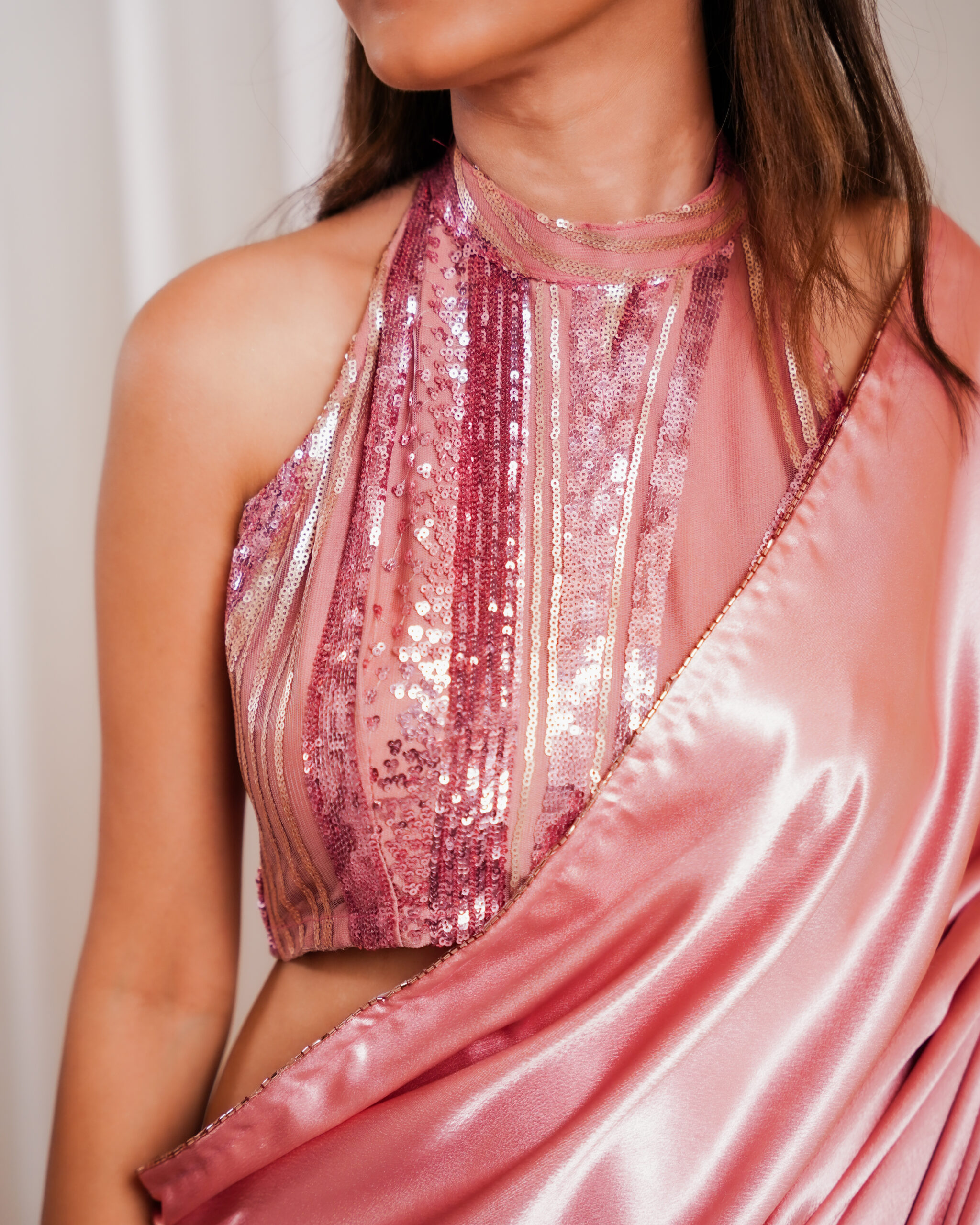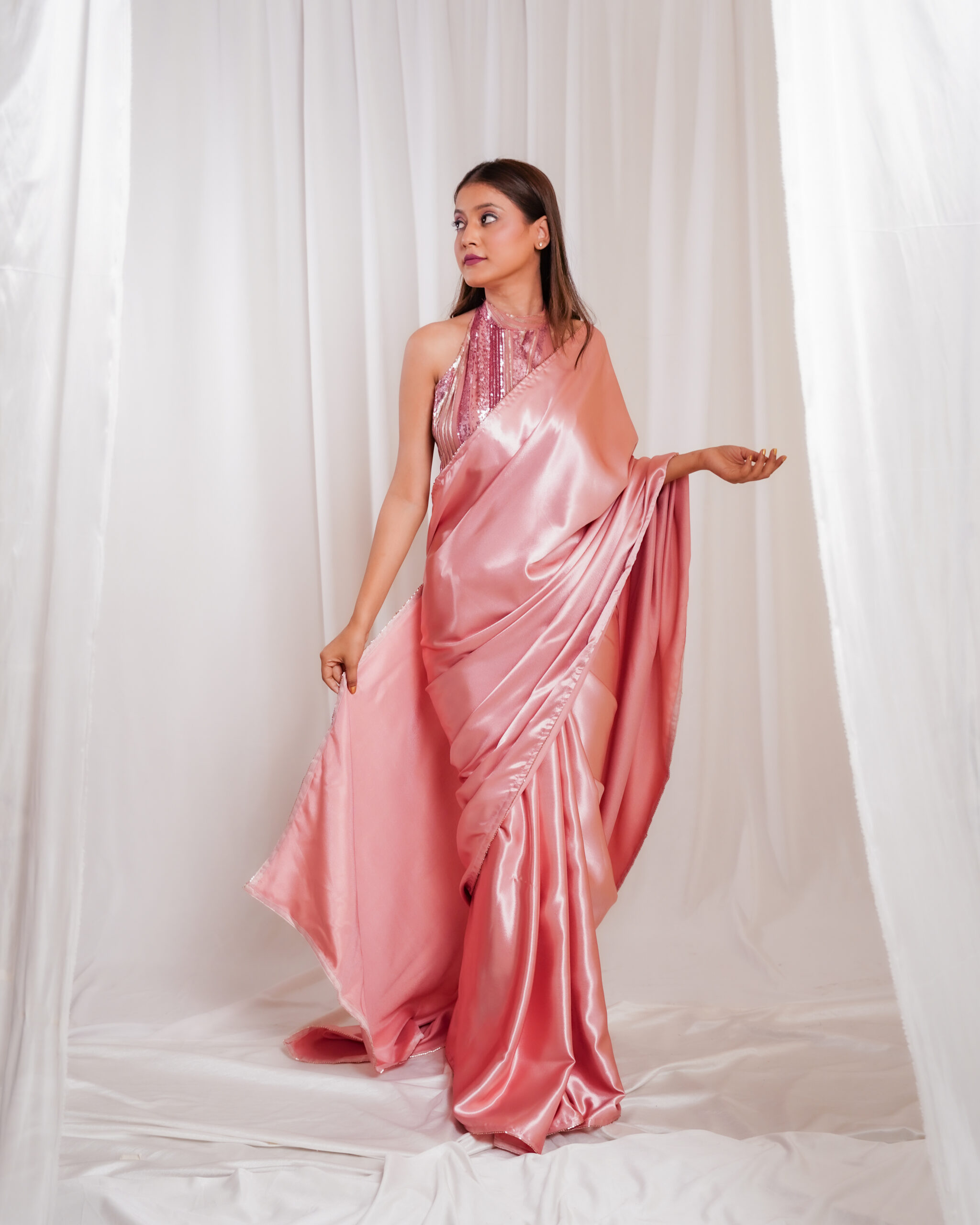 Fabric: Silk Satin (saree) / Sequin Net (blouse)