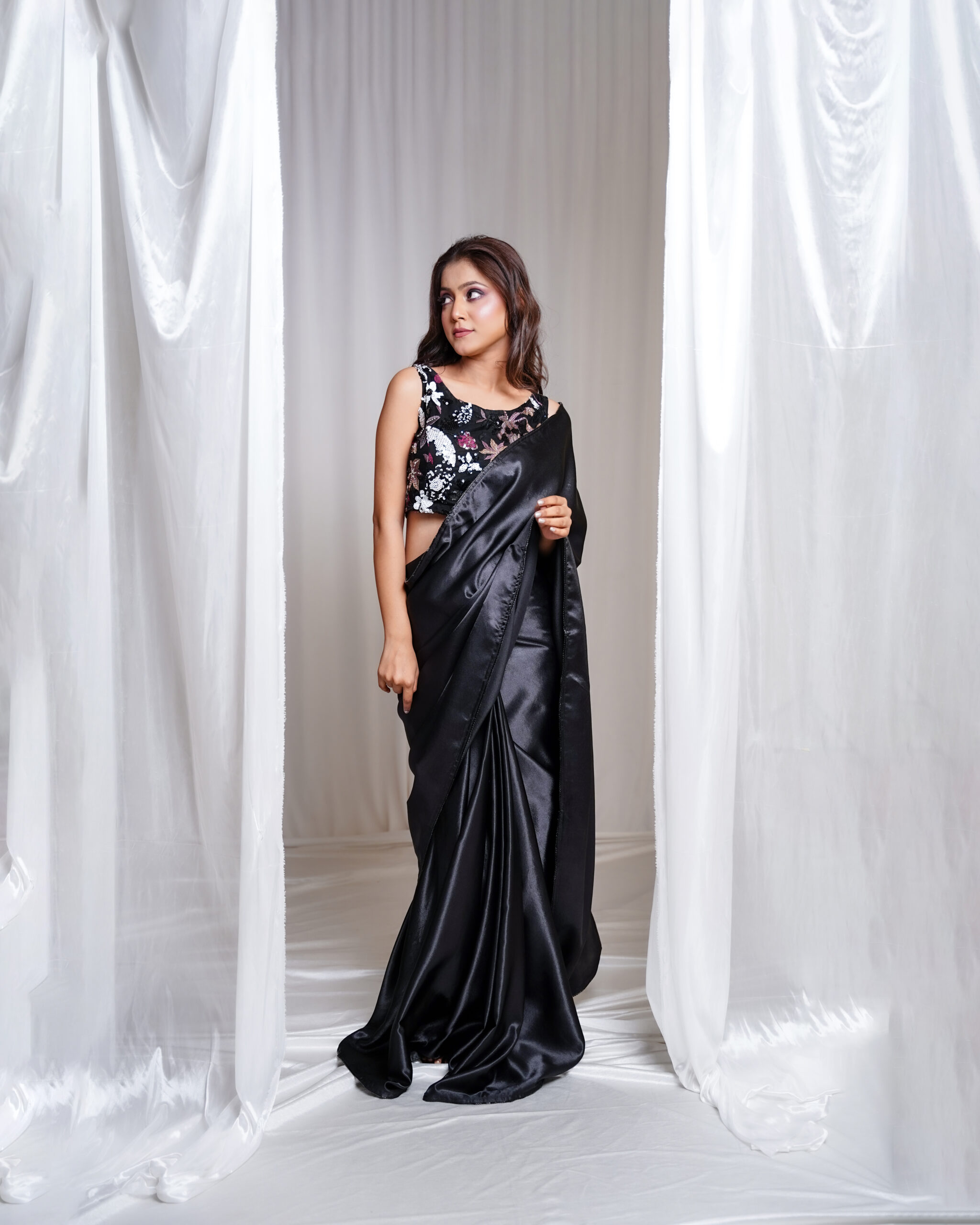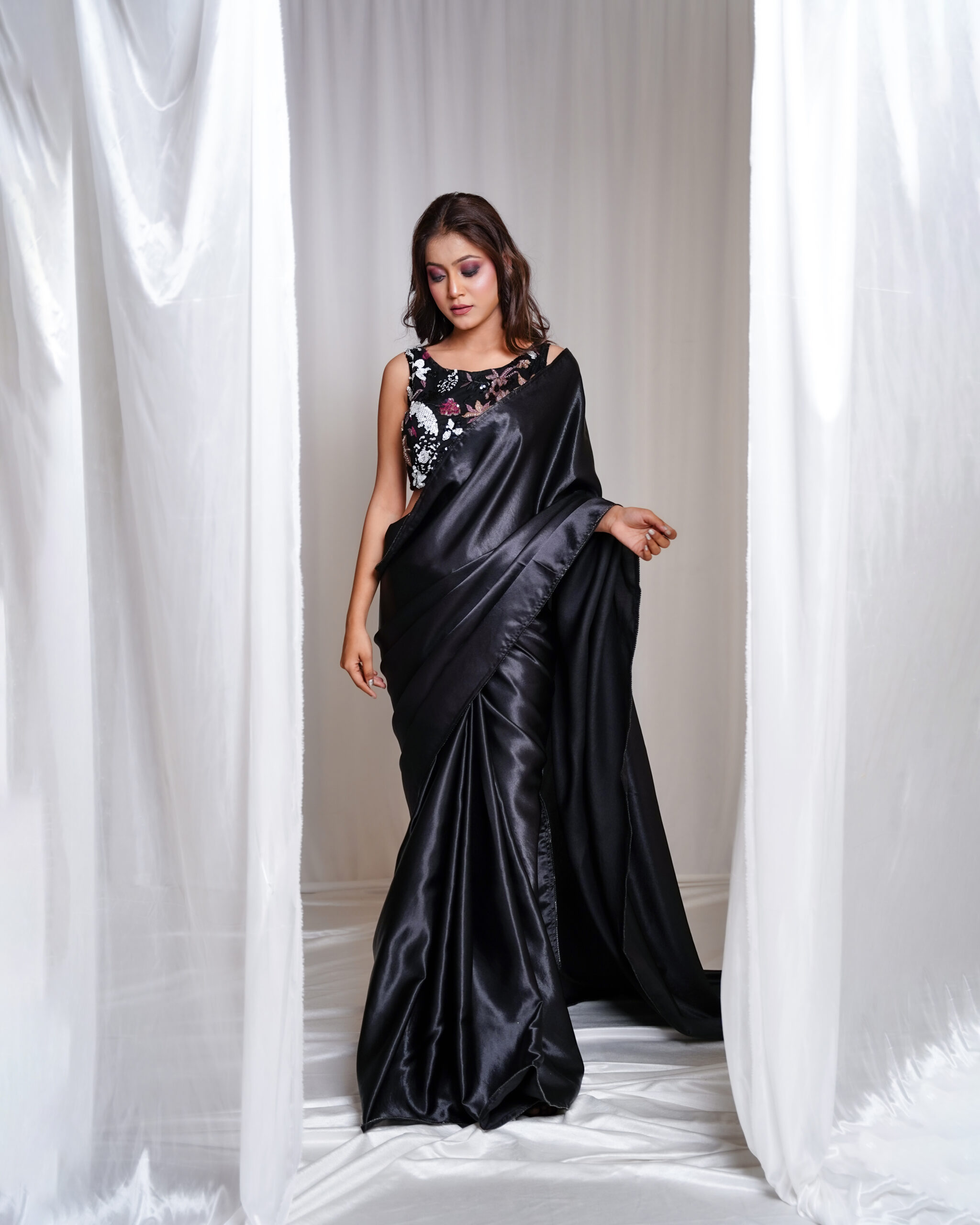Black Silk Satin Saree